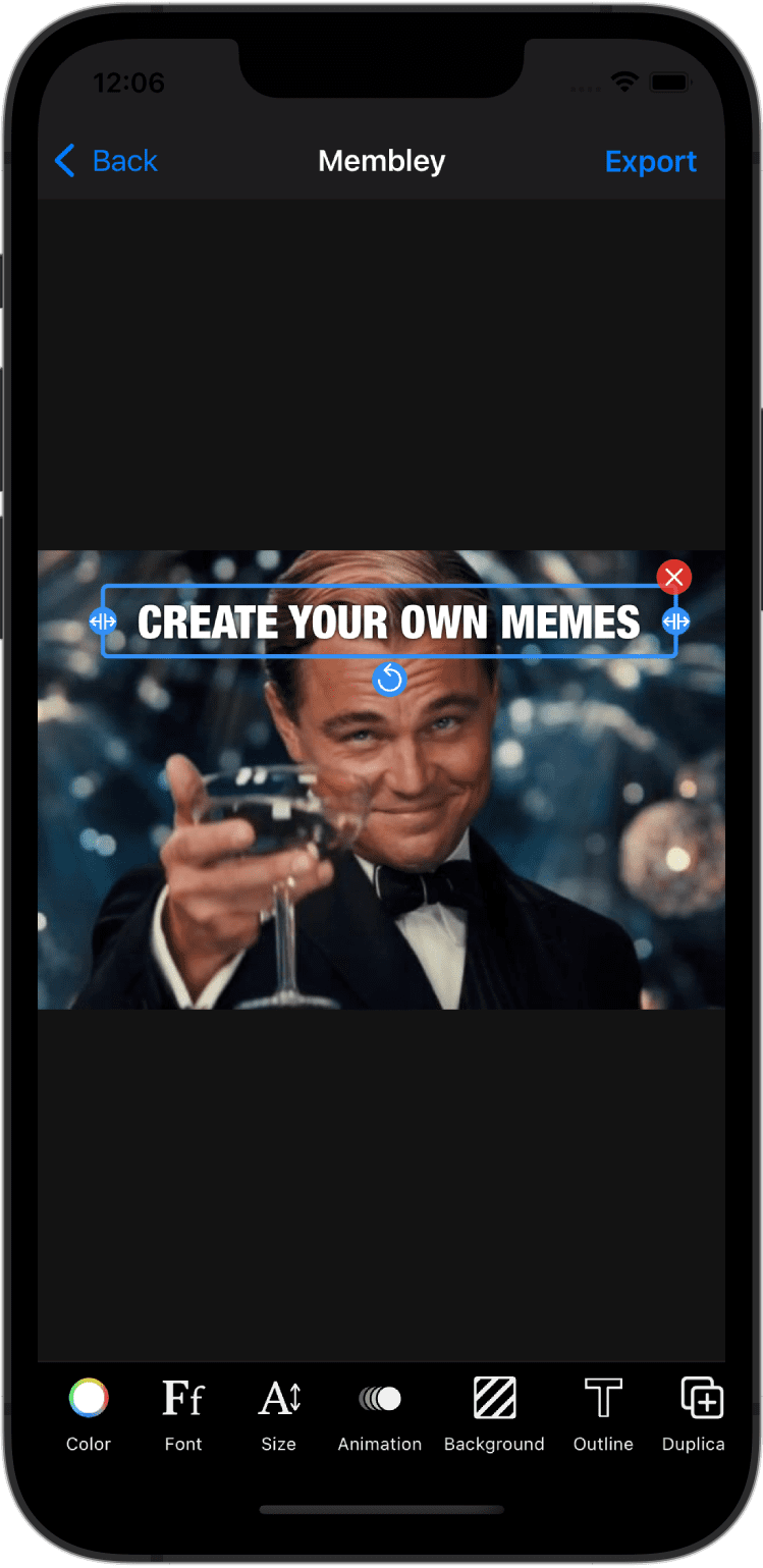 Share your memes with the world in just a few taps, or save them to your camera roll!